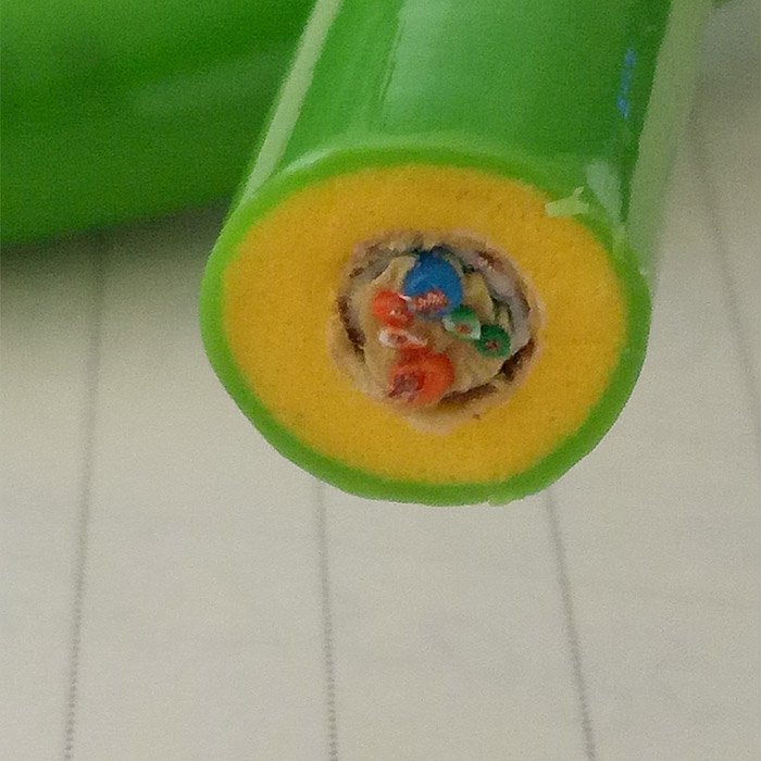 防海水水密電纜、水下機器人零浮力電纜:主要用于水下設備間的電氣連接,要求在水下環境工作,電纜性能方面要求耐水壓、耐海水腐蝕、耐磨損;在水下深度壓力和時間內,不允許有水滲出,電纜絕緣電阻不下降,電纜不變形。水密電纜根據使用方式可以為縱向水下機器人電纜形式、橫向密封形式。零浮力電纜護套層為防水聚醚型聚氨酯發泡工藝,根據使用要求漂浮或懸浮可分為零浮力和中性浮力。